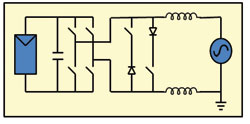 無變壓器的DC/AC逆變器在歐洲廣泛應用,但是在美國,這種產品只是最近才在某些地區被使用。無變壓器的逆變器拓撲結構有很多種,而Fraunhofer研究所開發的HERIC拓撲表現出了很高的效率。傳統的全橋逆變器的結構如圖1所示,HERIC拓撲如圖2所示,此圖中還顯示了兩種新的開關/二極管對。這種拓撲利用獨有的續流路徑來減小開關和導通損耗,使效率提升到98%以上。