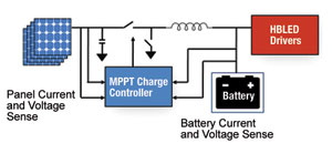 在另一個實例中,ST微電子開發了一個高度集成的HBLED太陽能MPPT充電器/驅動器。這個全集成的方案帶有MPPT優化的電池充電器和集成的HBLED驅動器。這個產品將在2010年晚期發布,非常適合于HBLED街燈照明應用。