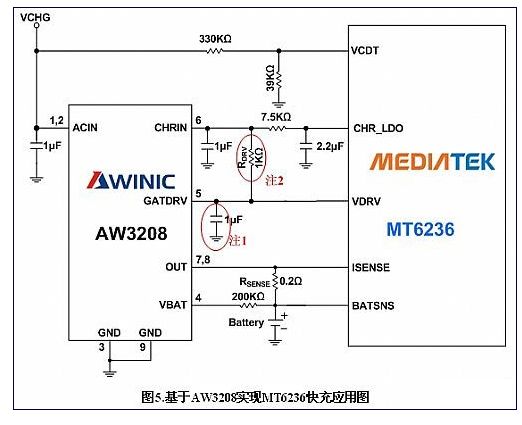 AW3208不但可以支持國內充電器實現快速充電,同時由于AW3208集成了降壓OVP的功能,也可以支持海外諾基亞充電器輸出電壓較高時的快充充電。高電壓帶來的必然是高功耗,為了確保AW3208能夠實現最大且最可靠的充電電流,請確保AW3208的散熱片是接到PCB的主地,且最好是把AW3208放置在板子中間,方便芯片散熱。