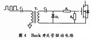 為了減小DB的反向恢復電流,進一步減少存儲進驅動電源的電荷量,本文中的DB采用快速恢復二極管。Buck電路開關管的驅動電路,如圖4所示。