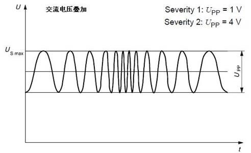 供電電壓瞬間下降:模擬其他電路內(nèi)的典型熔絲熔斷時(shí)造成的影響。注意試驗(yàn)脈沖的上升和下降時(shí)間 ≤10 ms。