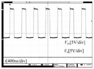 圖12 滿載時LT1935內部功率三極管集電極電壓和輸出電壓波形示意圖