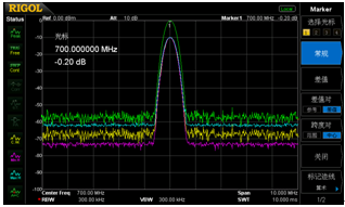 圖三:通過不同顏色的跡線清晰觀察比較改變RBW后的頻譜變化