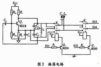 采用LC振蕩器的振蕩原理,LC振蕩器選擇L或是C參數為固定值。通過LC的組合,振蕩器起振,當測量電容時電感固定,測量電感時電容固定。通過LC振蕩器的頻率計算公式