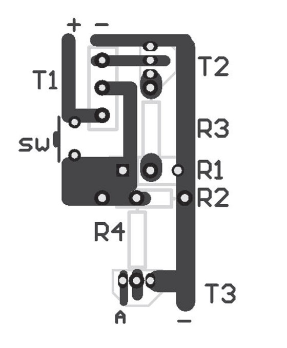 圖2是放電電路的印刷電路圖,元件數量少,很容易制作。