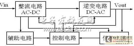 隨著各行各業控制技術的發展和對操作性能要求的提高,許多行業的用電設備都不是直接使用通用交流電網提供的交流電作為電能源,而是通過各種形式對其進行變換,從而得到各自所需的電能形式。現代逆變系統就是一種通過整流和逆變組合電路,來實現逆變功能的電源系統。逆變系統除了整流電路和逆變電路外,還要有控制電路、保護電路和輔助電路等。現代逆變系統基本結構如圖1所示。