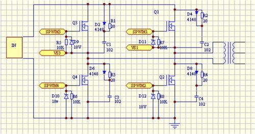 在開關管承受峰值電流和電壓的情況下,全橋輸出功率為半橋的兩倍,并切在功率大于500W時,全橋相對于半橋更合適,故本次設計采用全橋拓撲。
