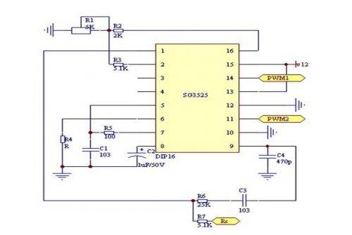 本設計采用的電源核心控制部分的芯片為美國通用公司芯片SG3525.控制電路如圖:
