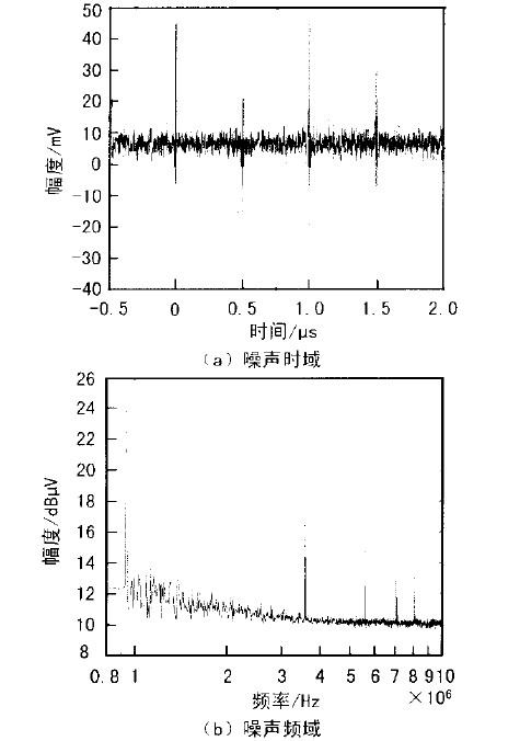 為了測試這種設計,用線性電源(0~32V,5A)來給數字PCB供電。這樣選擇的線性電源不會引入高頻噪聲影響測試結果。直流輸入噪聲的時域和頻域圖如圖1所示。圖1中可以看出,頻率1MHz的噪聲最大,因此EMI濾波器要抑制頻率為1MHz的噪聲。