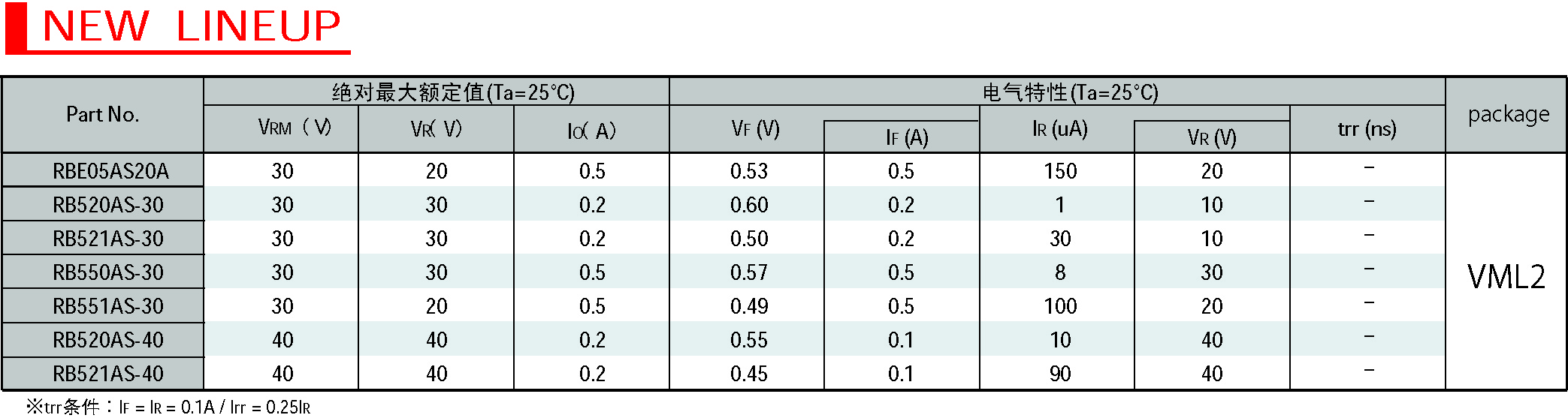 將VML2封裝亦擴展應用到肖特基勢壘二極管產品。根據不同用途共推出了七款系列產品。
