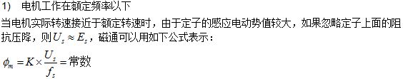在交流電機的控制過程中,為了充分利用鐵芯,電機在額定運行時設(shè)計磁通處于接近飽和的工作點,所以必須控制電機的每極磁通在電機工作過程中保持基本不變。由上面兩式可知只要同時協(xié)調(diào)控制控制Es和Fs就可以達到上述控制要求。