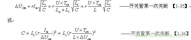 【1-42】和【1-43】式中, k=Ls/L為漏感 Ls與開(kāi)關(guān)變壓器初級(jí)線圈的電感L的比值。