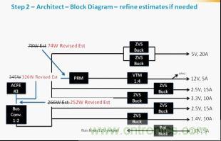 雖然完全令人滿意,但這種方法可能會變得有點單調乏味。為了簡化設計流程和節省時間,Vicor最近推出了PowerBench白板工具(whiteboard)。白板工具是利用一組合適的Vicor電源轉換元件設計和分析電源系統的一個在線工具。利用白板工具就不再需要查看包含在數據表中的運行和效率參數,工程師只需利用在線工具繪制出電路框圖,所有計算即可在幾毫秒內完成。