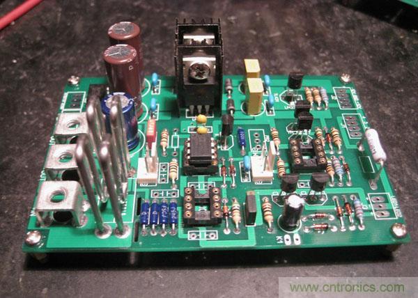 電源控制板,采用模擬控制,數(shù)字電源對器件精度要求高,器件的老化對指標精度有影響,并且實際調試電路需要大范圍連續(xù)調節(jié)不方便。大家DIY時一定不要忽略電阻的重要性,特別是電位器,關系到電路的穩(wěn)定精度。