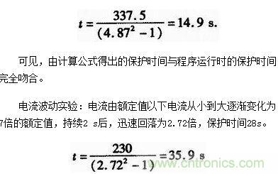 電流恒定實驗:設為實際恒定電流值,當n=4.87倍時,保護時間14 s。