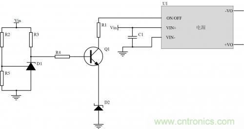 對于輸入端帶開關機控制的電源來說,關掉電源可以承受更高的輸入過電壓,輸入欠壓時,也能保護不會因過流損壞。如下圖,通過簡單的431基準檢測電路,可精確設置過壓或欠壓保護值,保護電源在輸入電壓異常情況下不損壞。