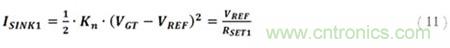 那么柵極驅(qū)動(dòng)對(duì)閾值電壓的差是什么呢,VGT?這最終由偏置網(wǎng)絡(luò)第1柱的反饋決定;它本質(zhì)上是維持所需ISINK1電流需要的電壓:
