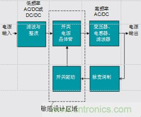 開關(guān)模式電源(SMPS)在電力轉(zhuǎn)換領(lǐng)域逐漸發(fā)展壯大,其原因在于其固有效率高于傳統(tǒng)電源設(shè)計(jì)。但是,不斷完善SMPS設(shè)計(jì)是一項(xiàng)永不止息的藝術(shù)。這些電源在高頻時(shí)產(chǎn)生電流,但必須防止這些高頻流入系統(tǒng),并且避免其流回電源。另外,電源中的敏感元器件的運(yùn)行容易受到內(nèi)部阻抗和周圍組件的影響。由于上述原因,SMPS解決方案盡可能地將系統(tǒng)集成,從而幫助降低電源設(shè)計(jì)的復(fù)雜性,并且減少制造成本。如果這個(gè)解決方案能夠?qū)⑿⊥庑纬叽绺綦x與功率電路包含在內(nèi),那么效果會(huì)更好,其原因是它有效將系統(tǒng)屏蔽于外界干擾,并且防止高頻從系統(tǒng)內(nèi)部遷移到線路上。