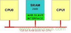 用戶RAM大小為2MB,掛接在雙核之間的AHB總線上,兩個(gè)內(nèi)核訪問(wèn)區(qū)域可以任意配置。其內(nèi)部是一塊 SRAM 和AHB總線從接口電路,如圖2-1所示。讀訪問(wèn)有一個(gè)周期的延遲,寫訪問(wèn)無(wú)延遲。讀寫訪問(wèn)時(shí)序見(jiàn)圖2-2、圖2-3。讀寫都支持字節(jié)(byte)訪問(wèn)、半字(half-word)訪問(wèn)或字(word)訪問(wèn)。