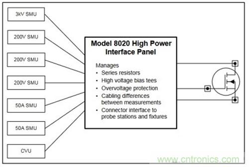 在對功率半導體器件執行全面的DC I-V和C-V測試時,為減少遇到的問題,許多工程師采用高功率接口面板(圖3),最大限度地減少主要測量類型之間的連接變化。可以通過T型偏置進行I-V和C-V測量,而不需改變連接,從而減少用戶出錯的機會。