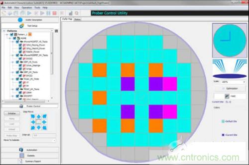 SMUs是經驗證可以用于半導體應用的多功能儀器。增加測試腳本的SMU儀器可以改善吞吐量,因為其實現了緊密同步,內置復雜運算處理器,在儀器內部執行決策,從而最大限度地縮短了通信時間。SMUs儀器可以用于參數曲線示圖儀配置中,實現交互測試及自動生產測試。其提供了自動軟件(圖4),同時融合了先進的半導體測試功能以及控制、數據報告和統計功能。