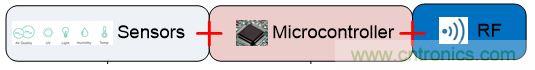 將傳感器與傳統(tǒng)的微控制器連接起來,需要在芯片外構(gòu)建接口電路,盡管某些設(shè)備可能已經(jīng)將一個(gè)固定的ADC集成到了MCU中。對(duì)于物聯(lián)網(wǎng)應(yīng)用而言,最理想的莫過于實(shí)現(xiàn)完整的模擬和數(shù)字組件與高度集成的MCU相結(jié)合。