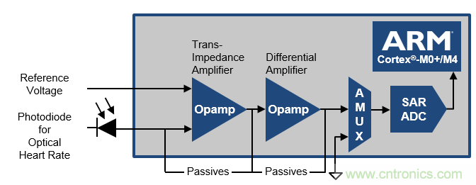 圖 10: PSoC 6 BLE AFE 示例─ 光學(xué)體積描技術(shù)(PPG ) *