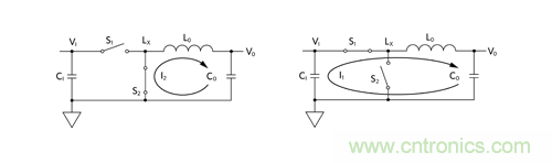 最大程度減小高 di/dt 電流環路:將 LO、CO 和 S2 正確布置在一起,最大程度減小 I2 電流環路。然后,使這一組元件靠近 S1 和 C1,最大程度減小 I1 電流環路。使用 buck 調節器 IC(即集成功率開關 S1 和 S2 的 buck 控制器)時,選擇具有好的引腳排列從而支持這種最小化的 IC 非常重要。相同道理也適用于使用電源模塊的情況。