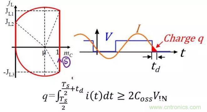 要回答這個定量問題,其實是不那么簡單的。對于PWM converter,參考quasi-square-wave ZVS buck converters,我們是可以畫出state plane,然后根據state plane圖的幾何關系定量分析出來的,但是非常繁瑣,常常是七八個三角函數等式求解。所以我個人愚見,在設計上,就讓開關頻率小點,電感值小點,讓電感電流ripple足夠大,能達到負值就差不多了。對于resonant converter,倒是可以簡單地通過積分方法,算出i與t的積分,讓這個it積分大于Coss上的charge就行。比如已知impedance,算出V與I的phase shift,然后換算成時間td,然后在td上對電感電流進行積分,只要這個積分大于等于Coss*Vin就行了。