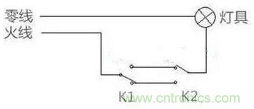 雙控開關(guān)有很多種接線方式,如果電工采用了下面這種接線方法,就會關(guān)燈后發(fā)微光。