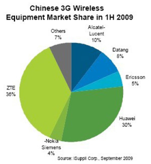 - 國內廠商在中國3G移動基礎設施市場獲得更多份額