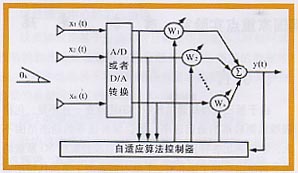 智能天線引入空分多址(SDMA)方式。在相同時(shí)隙、相同頻率或相同地址碼的情況下,用戶仍可以根據(jù)信號空間傳播路徑的不同而區(qū)分。實(shí)際應(yīng)用中,天線陣多采用均勻線陣或均勻圓陣。智能天線系統(tǒng)由天線陣;波束成形成網(wǎng)絡(luò);自適應(yīng)算法控制三部分組成(見圖1)。