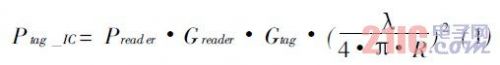 無源射頻標簽依靠讀寫器發射出的電磁波獲取能量。標簽芯片獲得的能量與很多因素都有關系,例如空間環境的反射,傳播媒介的吸收系數,溫度等。在理想自由空間,連續載波的情況下,有下面的近似公式:
