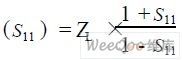 在載波頻率為13. 56 MHz時,通過在TX1 和TX2 兩點測量天線線路的反射系數(即參數S11 )來手動調諧,直到天線電路的輸入阻抗達到目標,計算方程如下: