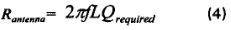 假設利用頻譜分析儀實測的天線品質因數為Qreqtuired,則相應天線的阻抗為: