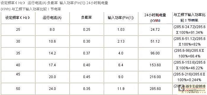 需要指出的是:變頻器當輸出頻率降低時,輸出電壓也相應降低,輸入功率明顯減少,對應頻率降低時電壓降低電機不會有溫升,若頻率不變時電壓降低至浮動電壓下限值時,電機就會有溫升。