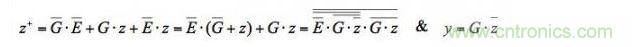 從這個公式可以看出,其中針對z+的最小項[E●z]不是多余的。它在最小項[G●E]和[G●z]之間扮演著反競爭橋的重要角色,可以消除G的所有邊沿處的連續(xù)競爭。
