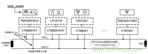與485類似,CAN-bus也是以總線的方式進(jìn)行通信的,所有的CAN節(jié)點(diǎn)都掛在一對(duì)差分線上。但CAN總線中的節(jié)點(diǎn)不存在主從的概念,當(dāng)節(jié)點(diǎn)有數(shù)據(jù)需要上傳時(shí)可自主、即時(shí)發(fā)送,先進(jìn)的仲裁機(jī)制保證數(shù)據(jù)不會(huì)沖突。