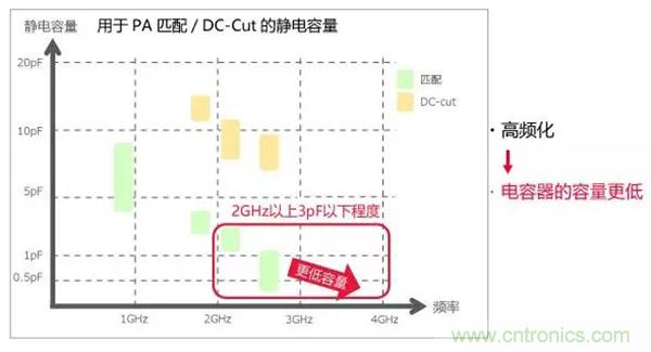 伴隨著基站PA用GaN高頻大電力晶體管的普及,與傳統(tǒng)的Si LDMOS晶體管相比,大電力化、高溫動作對應(yīng)、高速(高頻)工作對應(yīng)等PA性能顯著提升。晶體管性能提升的同時,這也意味著周邊元件需要具有更加嚴(yán)酷的使用環(huán)境耐性。