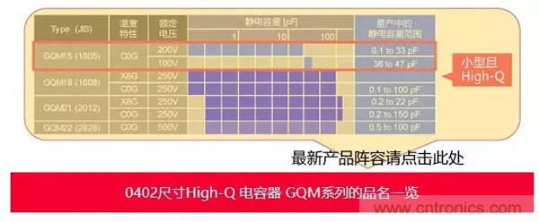 村田制作所的High-Q電容器除傳統(tǒng)的0603尺寸外,還新增0402尺寸到產(chǎn)品陣容。通過獨(dú)創(chuàng)的構(gòu)造、材料,即使靜電容量值很低,與標(biāo)準(zhǔn)規(guī)格產(chǎn)品(GRM系列)相比,也可實(shí)現(xiàn)高Q值。因兼具匹配用電容器的小型化和高Q值,有助于實(shí)現(xiàn)高頻PA電路設(shè)計的高密度化。