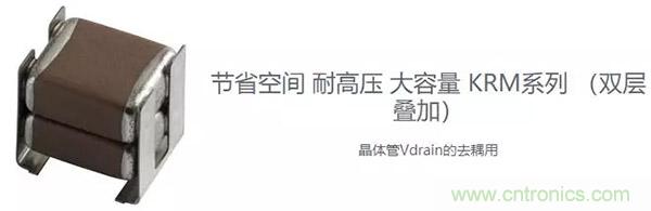 村田制作所將通過使用雙層疊加MLCC,獲得小占用面積大靜電容量的帶有金屬端子的電容器增至產(chǎn)品陣容。大型(2220)尺寸的片狀多層陶瓷電容器可以不用擔(dān)心由于機(jī)械壓力產(chǎn)生的裂紋和溫度循環(huán)產(chǎn)生的焊接裂紋。通過金屬端子吸收壓力,成功將風(fēng)險控制到超小。通過實(shí)現(xiàn)晶體管Vdrain去耦用電容器節(jié)省空間和大容量的特性,能夠提高設(shè)計的自由度。