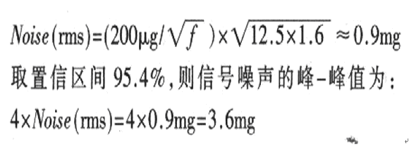 傾斜角度測(cè)量值通過XOUT、YOUT端口輸出的數(shù)字信號(hào)得到。由于經(jīng)XFILT、YFILT端口的電容低通濾波,信號(hào)帶寬為200Hz.則根據(jù)ADXl202的噪聲計(jì)算公式為: