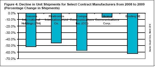 據(jù)iSuppli公司,2010年頂級(jí)手機(jī)合同制造商將面臨困境。去年這些廠商顛覆了長(zhǎng)期的商業(yè)模式,而且發(fā)生了前所未見(jiàn)的虧損。