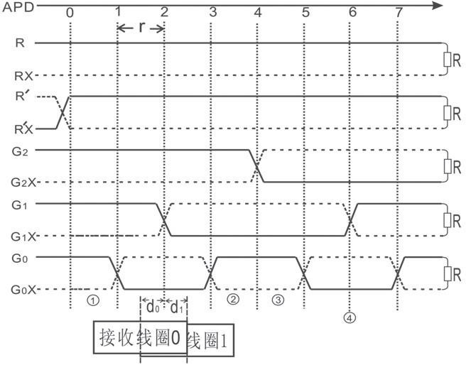 (1)線圈1的中心位于G0兩交叉間左半部(圖4位置①),此處檢測出來的APD位置數據g為奇數,則HRPD=d1=P0×r。