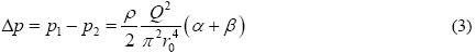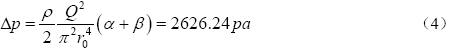 通過上式可以通過壓差來計算流量,為了平衡擴(kuò)張和壓縮作用以及盡量減少能量損失,當(dāng)θ=7°,φ=0.13,ζ=0.02,且流量Q為 61.1L/min,即在該管徑下流速為1m/s時,對異徑管尺寸進(jìn)行優(yōu)化為:a=0.4r0,b=0.8r0,a=2.9264,b=3.1109,α+β=6.0373,α/β=0.9407