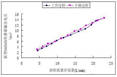 新型MEMS傳感器的標(biāo)定是通過渦輪流量計來實現(xiàn)的。采用串聯(lián)在系統(tǒng)中的CLG15耐高壓渦輪流量計(名義精度為0.5%)和SO64C-1型流量測試儀進(jìn)行標(biāo)定。