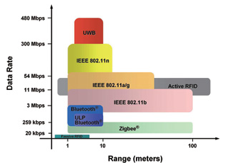 根據不同的頻率、目標數據速率、距離,以及互操作性的理想水平,新出現了幾種工作在ISM頻率空間中的標準。圖1顯示了無線工程師進行產品開發時最常使用的一些標準。