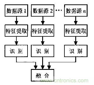 2.特征層融合:特征層融合屬于中間層次,先從每種傳感器提供的觀測數(shù)據(jù)中提取的有代表性的特征,這些特征融合成單一的特征向量,然后運(yùn)用模式識別的方法進(jìn)行處理。這種方法的計(jì)算量及對通信帶寬的要求相對降低,但由于部分?jǐn)?shù)據(jù)的舍棄使其準(zhǔn)確性有所下降。