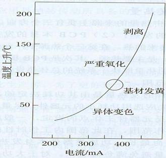 值得注意的是,當導體圖形溫度上升到85℃左右時,絕緣材料自身開始發黃(圖1),電流繼續通過,最后銅圖形熔斷,特別是多層板內層圖形,周圍都是傳熱性差的樹脂,散熱困難,因而溫度不可避免地上升,所以特別要注意導體圖形線寬的設計。實際上在進行PCB布線設計時走線線寬主要依據其發熱量和散熱環境來確定的。銅導體的截面積決定了導線電阻(數字電路中線電阻引起的信號損耗可忽略不計),銅導體和絕緣基材的導熱率影響溫升,進而決定載流量。圖2是普通FR-4覆銅箔板銅導體圖形線寬及截面積與允許電流之間的關系圖。從圖中可以看出:導體圖形截面積一定,當其允許電流值為2A,溫度上升值低于10℃時,對于35Um銅箔,其線寬應設計為2mm:對于70um銅箔,其線寬應設計為lmm。由此得出:當導體的截面積、允許電流和溫度上升值一定時,可通過增加銅箔厚度或加大線寬值兩個方面來滿足走線的散熱要求。