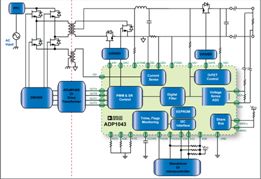 如何提高電源的效率,是目前電源設(shè)計(jì)中面臨的重要課題。數(shù)字電源技術(shù)的出現(xiàn)為提高電源的效率提供了新的方法。ADP1043是ADI公司推出的一款針對(duì)高端服務(wù)器、存儲(chǔ)器以及通信設(shè)備等電源所設(shè)計(jì)的數(shù)字電源控制器,可支持多種拓?fù)浣Y(jié)構(gòu),并利用直觀的圖形用戶界面(GUI)無需用語言進(jìn)行編程,便可在幾分鐘之內(nèi)配置包括頻率、時(shí)序、電壓設(shè)置與保護(hù)限制等系統(tǒng)電源參數(shù)。圖1所示為ADP1043的典型應(yīng)用電路。其所采用的數(shù)字電源技術(shù)可幫助實(shí)現(xiàn)高效率電源。